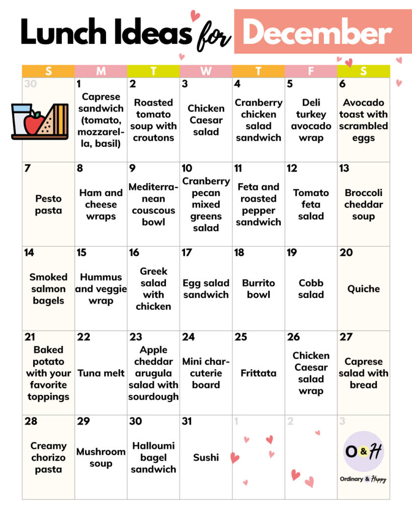 - Lunch ideas (December calendar)