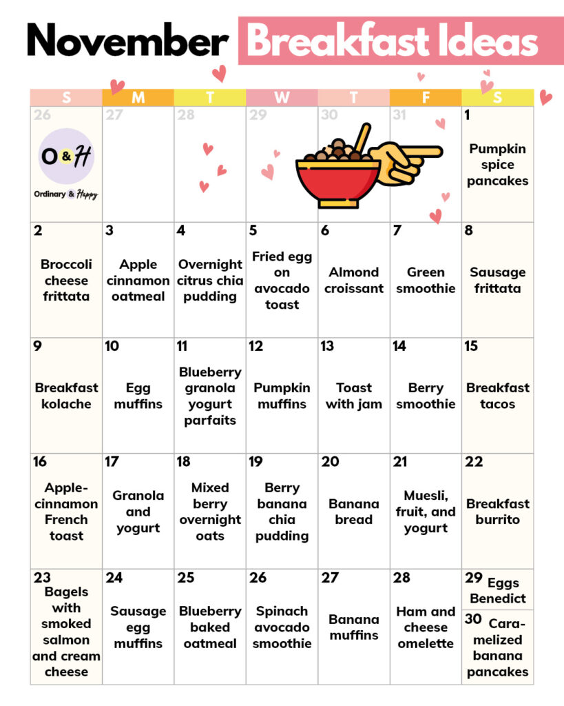 Come back over the next 2 weeks as we add more calendars, including breakfast ideas and more.