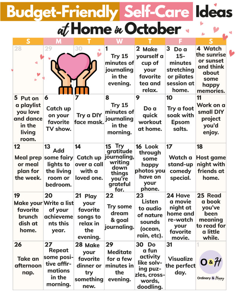 Not only are our October self-care ideas budget-friendly, but you can also do all of them from home. With the nights drawing in and the weather getting colder, this month-long activity gives you a great opportunity to prioritize your self-care some more.