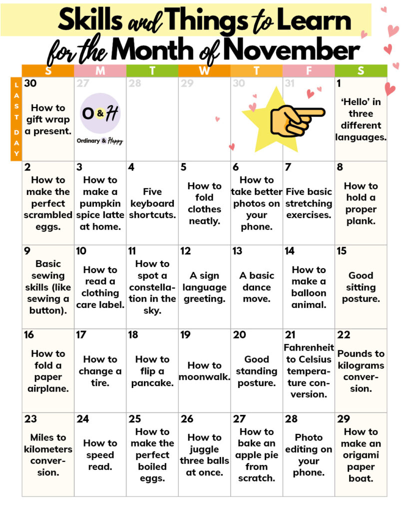 If you’re feeling curious and want to try something a little different, give our 30 days of things to learn and new skills a try.