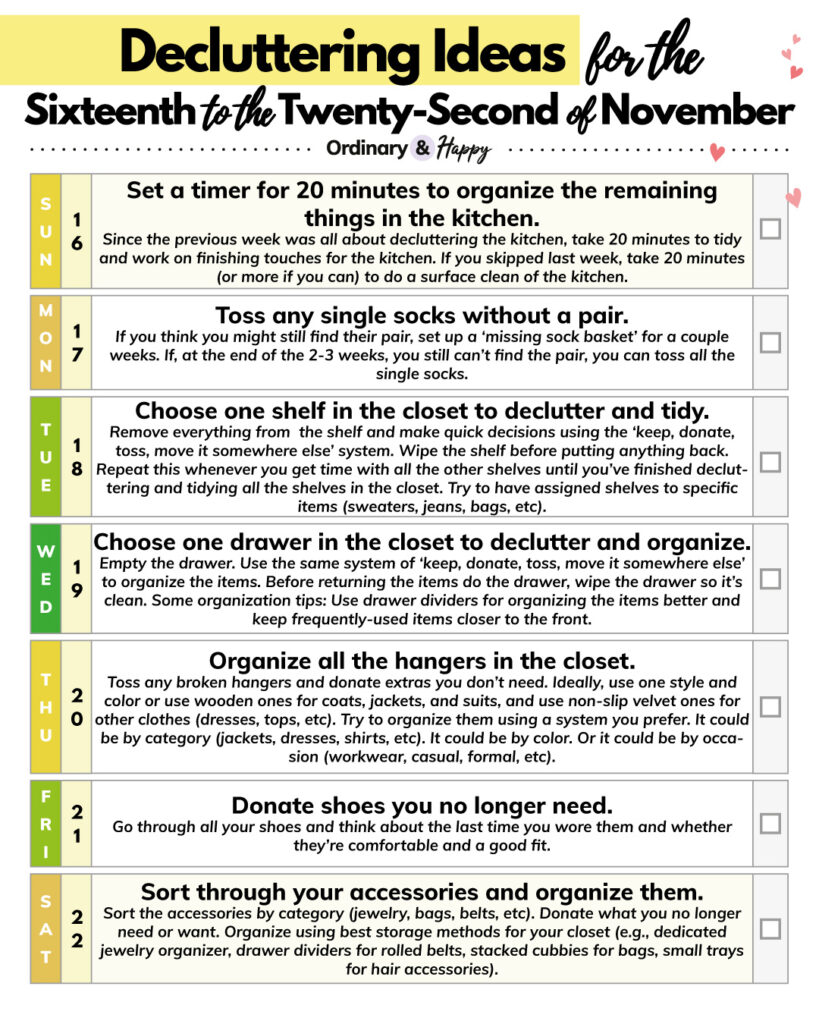 Get the November 16-22 Decluttering Printable here.