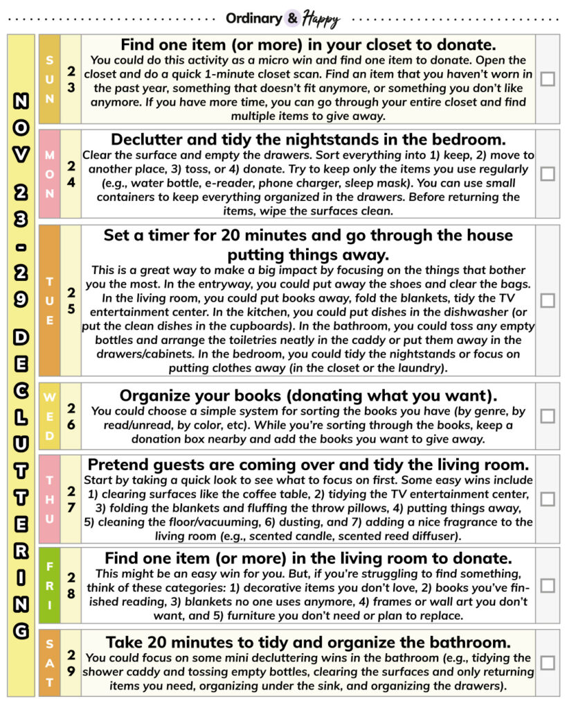 Get the November 23-29 Decluttering Printable here.