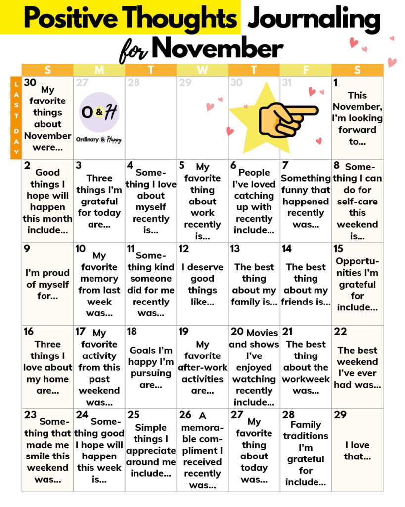 Get the Positive Thoughts for November Journaling printable here.
