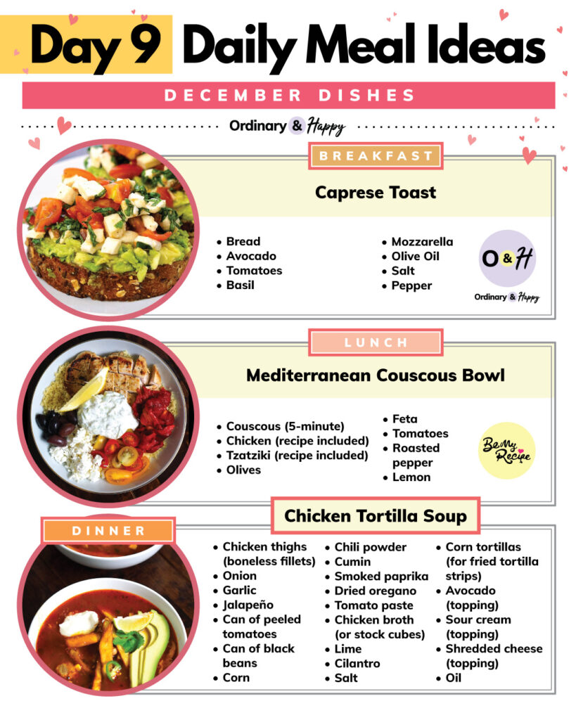 You can follow the plan day by day, as some of our followers are doing. Or, you can simply use our ideas for inspiration and to take some decisions off your plate (pun intended) during this busy holiday season.